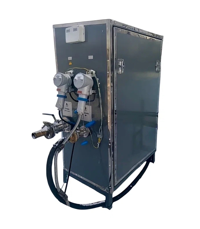 Мобильный узел учета представляет собой рамную конструкцию с установленным на ней кориолисовым расходомером «Sekee MASS» и контроллером, расположенным во взрывозащищенном шкафу. В состав Sekee MS также входят трубная обвязка и задвижки с электроприводом, позволяющие дозировать продукцию через узел учета, приостанавливать операции по учету.